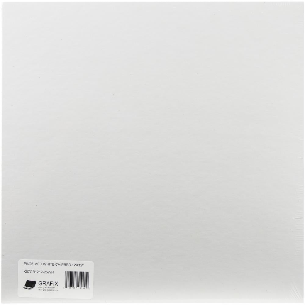 Grafix - Peso medio - Hojas de aglomerado 12"X12" - Blanco. ¡Las láminas de aglomerado Grafix vienen completamente desnudas para que puedas vestirlas como quieras! Pintura, tinta, arena estampada, desgastan la cubierta con fibras de papel y tela, cosen, troquelan, colocan capas e incluso crean un álbum hecho a mano. ¡Las posibilidades son infinitas! Cada hoja mide aproximadamente 1 mm de espesor. Libre de ácido. Importado. Cada hoja se vende por separado. Los paquetes completos son de 25 hojas.