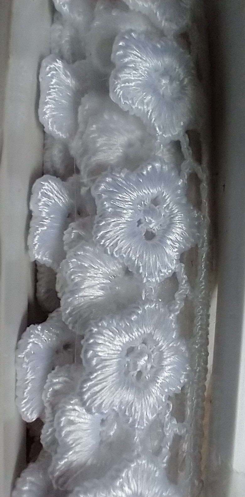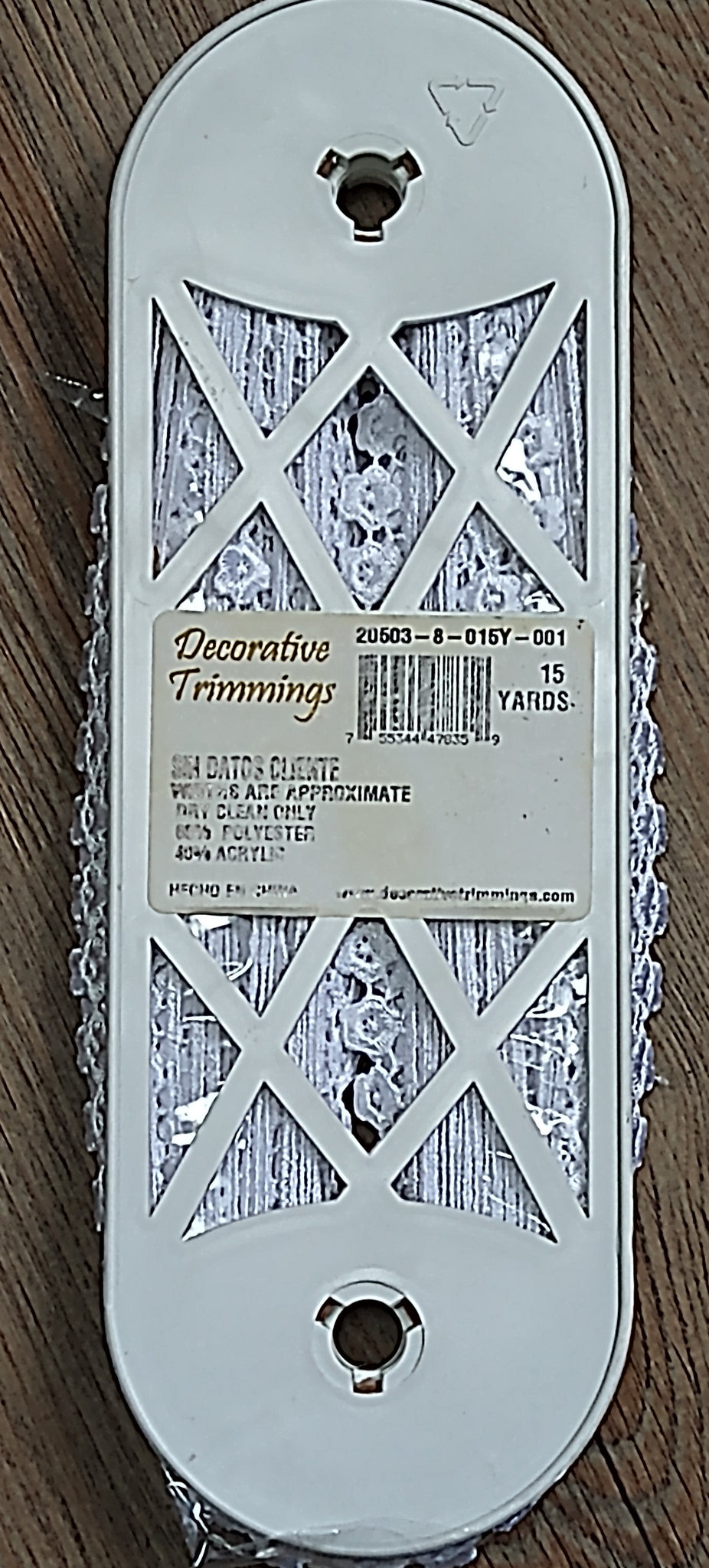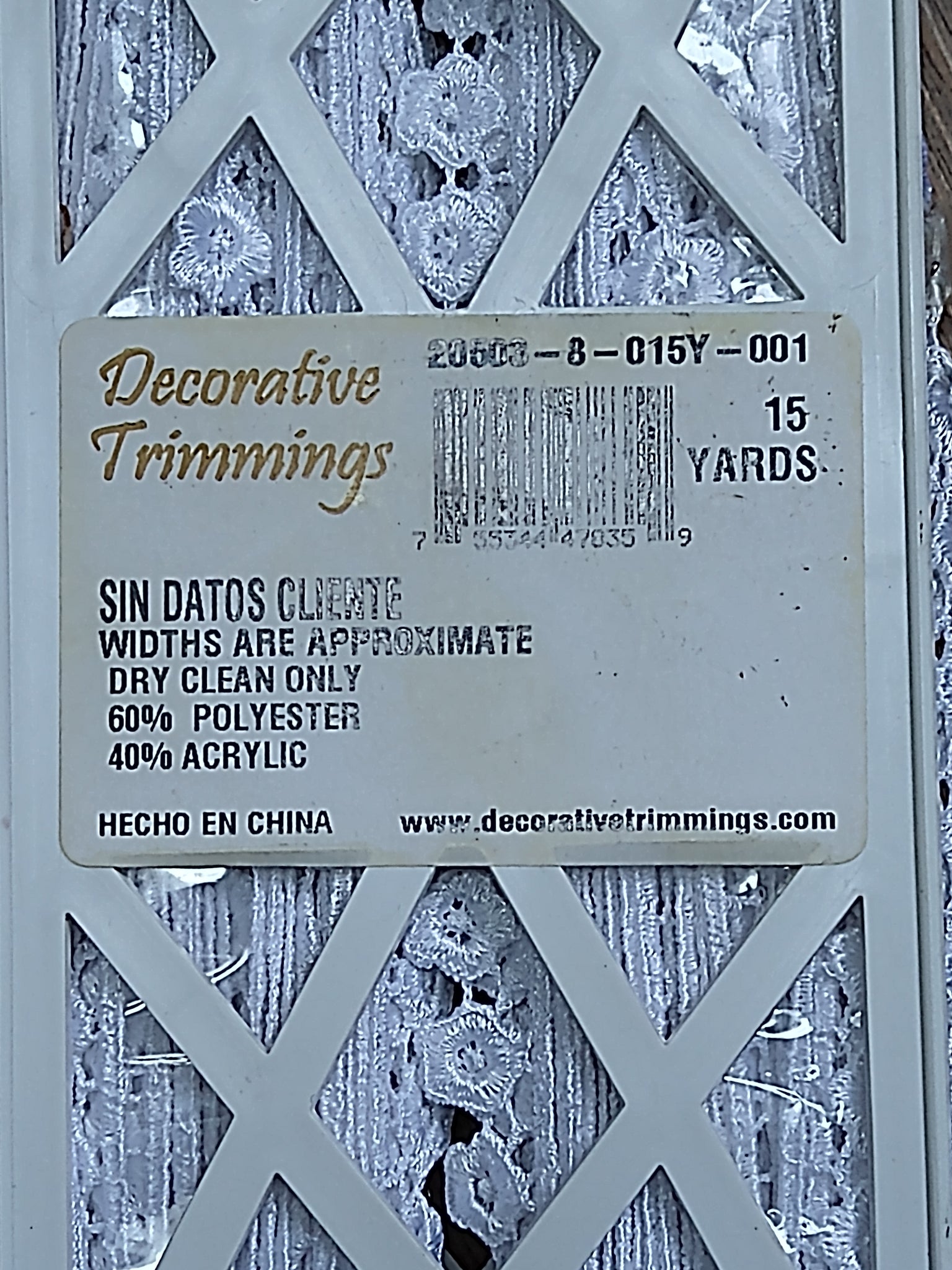 Encaje Veneciano - Ribete - Margarita - Blanco. Este artículo se vende en segmentos de 12 pulgadas. Por ejemplo, si solicita 18 pulgadas, vendrá todo en una sola pieza para que pueda recortarlo o cortarlo a su longitud preferida.