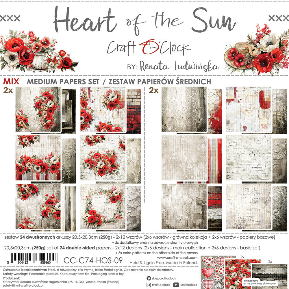 Craft O'Clock - 8X8 Mix Paper Pad - Heart of the Sun