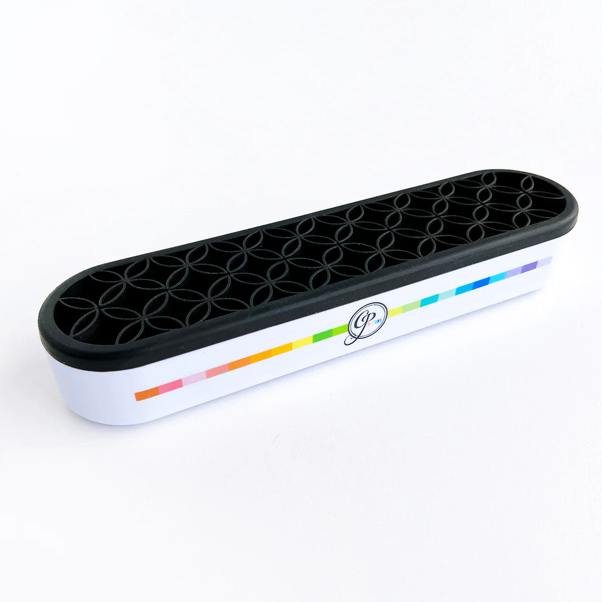 Catherine Pooler - Brush-N-Tool Holder. Need a spot to store your CP Blending Brushes, Detail Blending Brushes and other tools? The Brush-n-Tool Holder has got you covered! This silicone holder will store your brushes, markers, other tools and even scissors for easy access on your work surface and comes decked out with the beautiful CPD rainbow design. In black and white, this will look great in any crafty space.