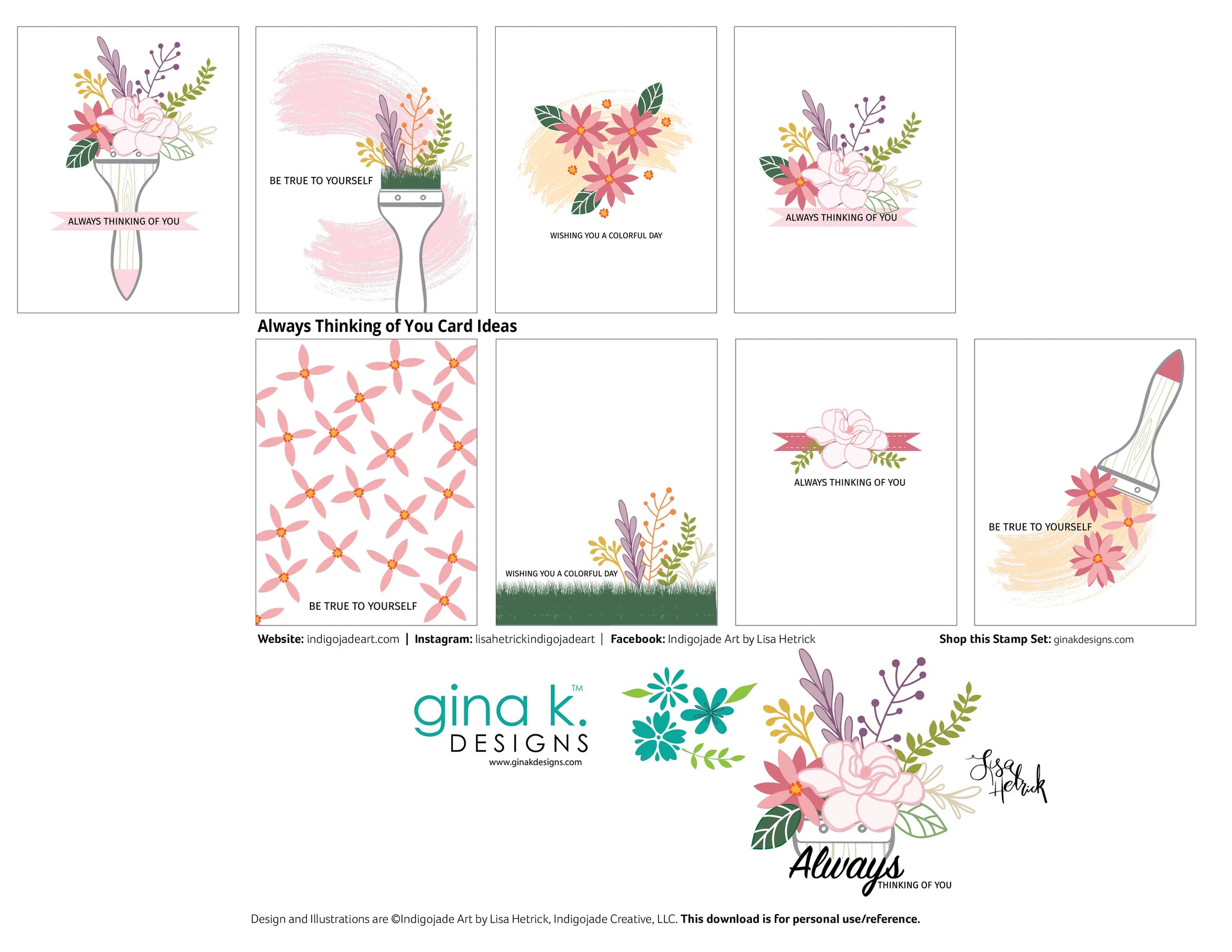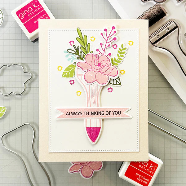 Gina K. Designs - Stamp & Die Set - Always Thinking of You. Always Thinking of You is a stamp set by Lisa Hetrick. This set is made of premium clear photopolymer and measures 6" X 8". Made in the USA.