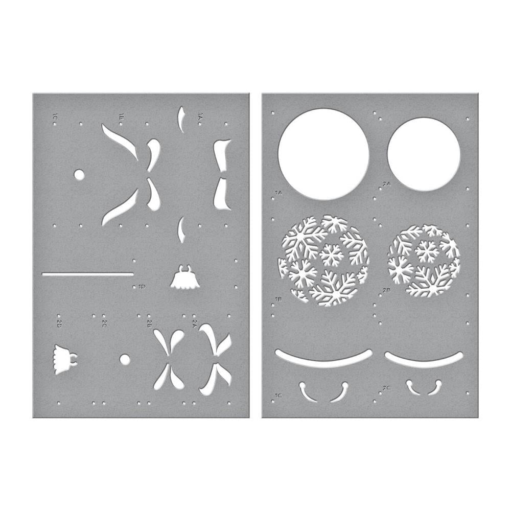 Spellbinders - Stencil By Bibi Cameron Snowflakes - Snowflake Ornaments. Snowflake Ornaments Stencil is part of the Bibi's Snowflakes Collection by Bibi Cameron and comes in a set of two 6 x 9-inch layering stencils and two masks. They are made of durable mylar stencil material. Use them to create a magical snowflake inspired ornament to add on your card. Bibis Snowflakes is a beautiful collection to celebrate the winter season. Bibi Camerons stunning and clever designs make these snowflakes come to life. She offers a variety of motifs from large format, interactive feature, stamps, stencil and even a Glimmer Hot Foil Plate & Die Set. Many to choose from! How to Use: Stencil the design by following the numbered stencil sheets to create a colorful card pattern. Approximate Size: Stencil: 6.00 x 9.00 inches. Made in USA.