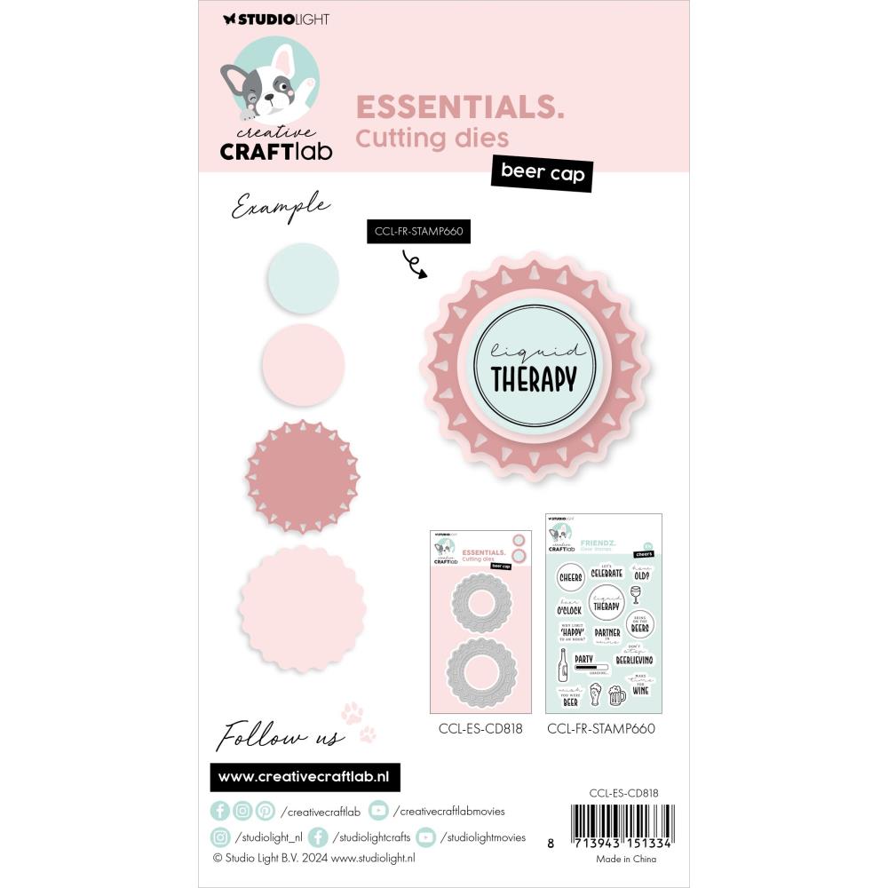 Studio Light - Essentials Cutting Die - Nr. 818 - Beer Cap. Use this die set to cut round frames with a scalloped edge which can be nested or used alone. Perfect for cards, scrapbook layouts or journal pages. 8 pcs.